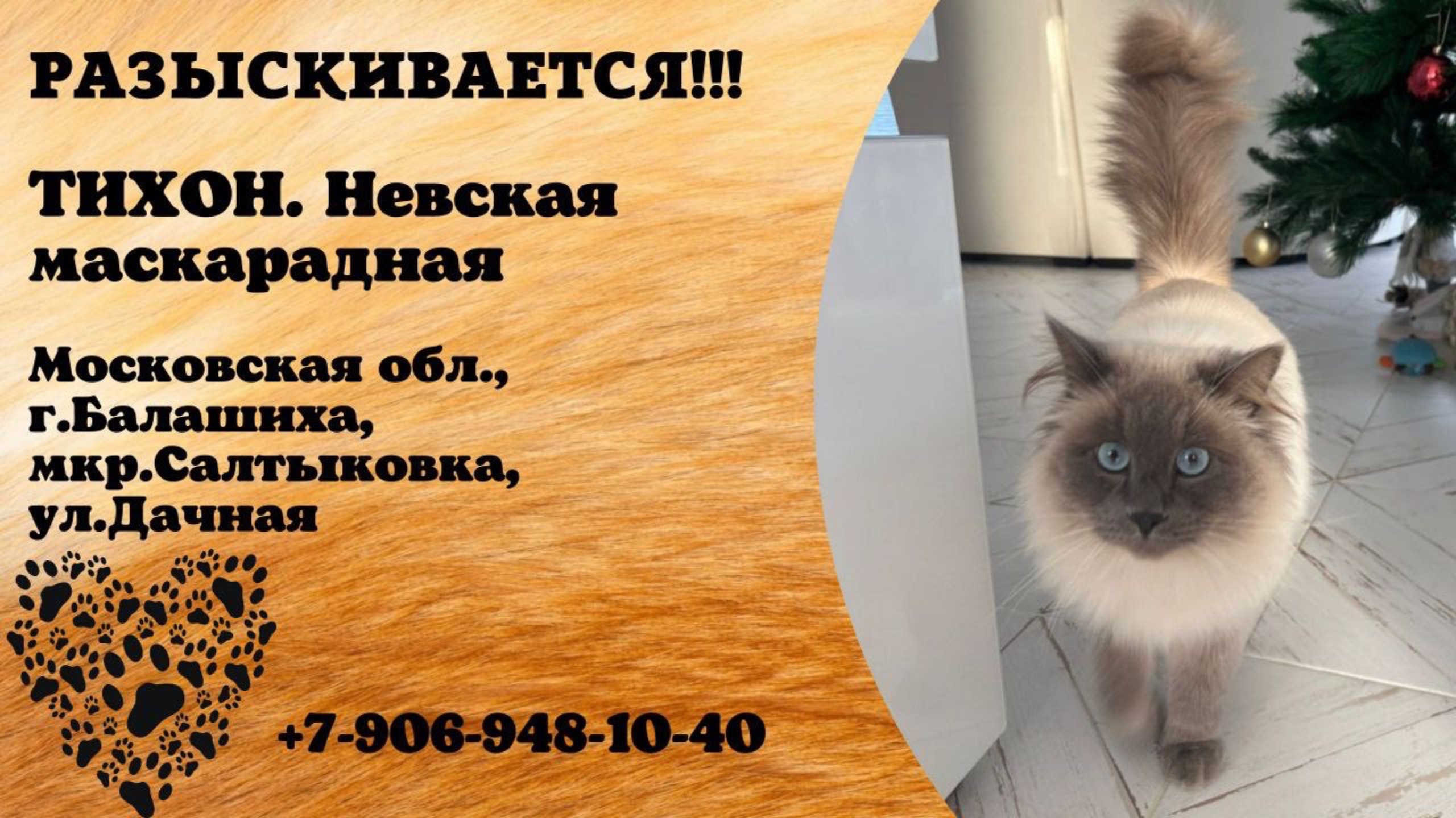 Московская Балашиха Пропал кот Ночь с 12 на 13.01 Кот Тихон, порода Невская маскарадная. Мкр.Салтыковка, ул.Дачная Имя хозяина: Анастасия Телефон: +7 906 948-10-40 Инфо https://vk.com/wall-198815410_171055 #пропала_собака#московская #балашиха