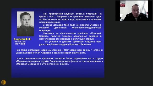12.05.2021 Пленарное заседание МГНОТ Вклад медиков в Победу в Великой Отечественной Войне - Член-корр. РАН, профессор Симоненко Владимир Борисович (начальник кафедры терапии усовершенствования врачей Медицинского учебно-научного клинического центра им. П.В. Мандрыка МО РФ) Труд медицинских работников в годы Великой Отечественной Войны приравнивался к подвигу. Весь цвет нашей медицины был в вооруженных силах, свой неоценимый вклад внесли такие выдающиеся советские ученые-медики, как: академик Бурденко Николай Нилович - главный хирург Красной Армии, генерал-полковник медицинской службы; академик Вовси Мирон Семенович - главный терапевт Армии, генерал-майор медицинской службы; академик Джанелидзе Иустин Ивлианович - главный хирург военно-морского флота, генерал-лейтенант медицинской службы; академик Мясников Александр Леонидович - главный терапевт военно-морского флота, полковник медицинской службы; академик Смирнов Ефим Иванович – руководитель главного военно-санитарного управления, генерал-полковник медицинской службы; академик Орбели Лион Абгарович – начальник Военно-медицинской академии им. С.М. Кирова, генерал-полковник медицинской службы и др. За годы войны советские медики вернули в строй более 17 миллионов раненных и больных, что по численности сравнимо с 1700 дивизиями!!! Женщины-медики в годы Великой Отечественной войны внесли выдающийся вклад в разработку новых высокоэффективных лекарственных средств, одним из таких примеров стало получение группой советских ученых под руководством профессора З.В. Ермольевой первых образцов пенициллина. В 1944 году была создана Академия медицинских наук СССР, главной идеей которой было обобщить и развивать медицинскую науку, в том числе опыт, накопленный советскими медиками во время войны. В течение 5 лет был опубликован фундаментальный научный труд в 35 томах «Опыт советской медицины в Великой Отечественной Войне. К изданию труда был привлечен коллектив авторов и редакторов из 1700 чел., в их числе были 50 академиков и членов-корреспондентов АН и АМН СССР, академий наук союзных республик, видные специалисты-медики и врачи.
