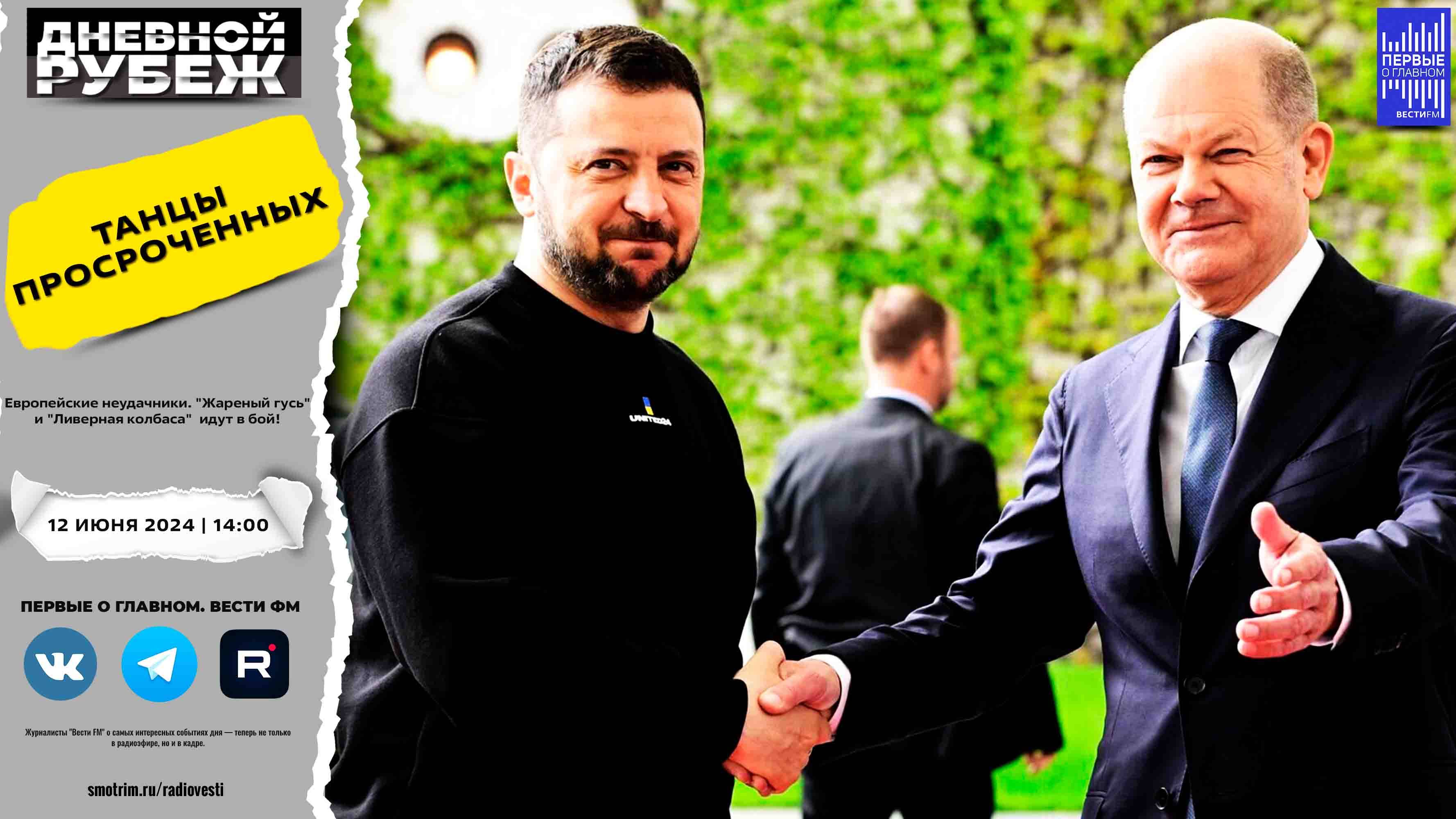 #дневнойрубеж #первыеоглавном #сво #донбасс #спецоперация #украина #саммит #ес #шольц #макрон #урсула #мир #переговоры #путин #зеленский Европейские неудачники. "Жареный гусь" и "Ливерная колбаса" идут в бой! 🔔Подписывайтесь на Telegram канал - Первые о главном: https://t.me/vestifmfirst 🔔Подписывайтесь на Rutube канал - Первые о главном: https://rutube.ru/channel/24115140/ 🔔Подписывайтесь на VK канал - Первые о главном: https://vk.com/first.vestifm 🔔Подписывайтесь на ДЗЕН канал - Первые о главном: https://zen.yandex.ru/id/5fc4960a799d1b24b5be5189 🔔Подписывайтесь на Telegram канал - ВестиFM+: https://t.me/s/vestifmplus СМОТРИТЕ НАС НА ПЛОЩАДКЕ СМОТРИМ: https://smotrim.ru/channel/365