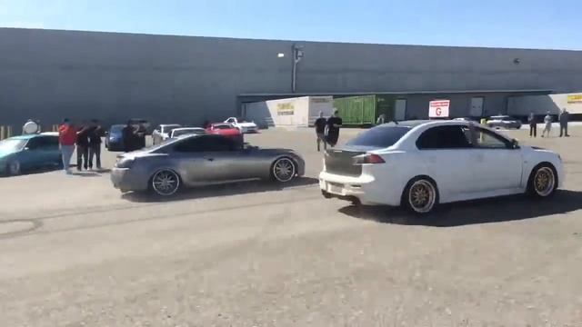 Mitsubishi Evo vs Infiniti G37 good race Evo won by a little.