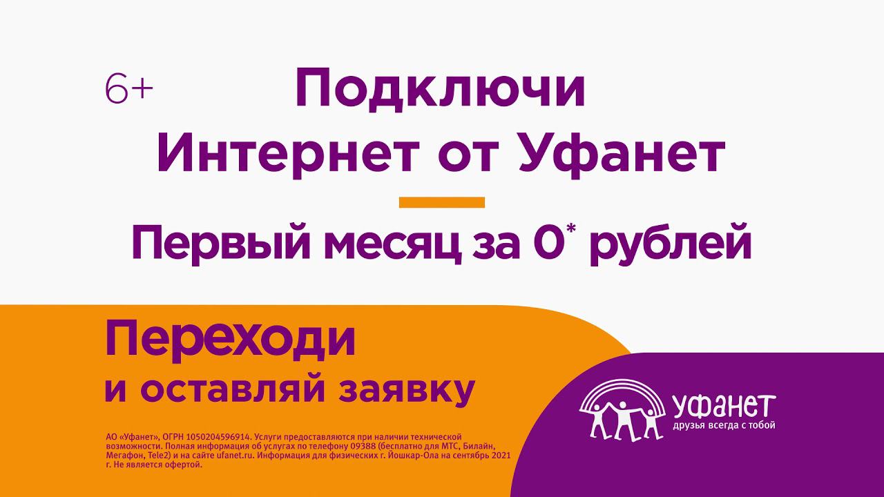 Подключись к Уфанет до 31 декабря 2021 и получи 1 мес.пользования услугами за 0 рублей!