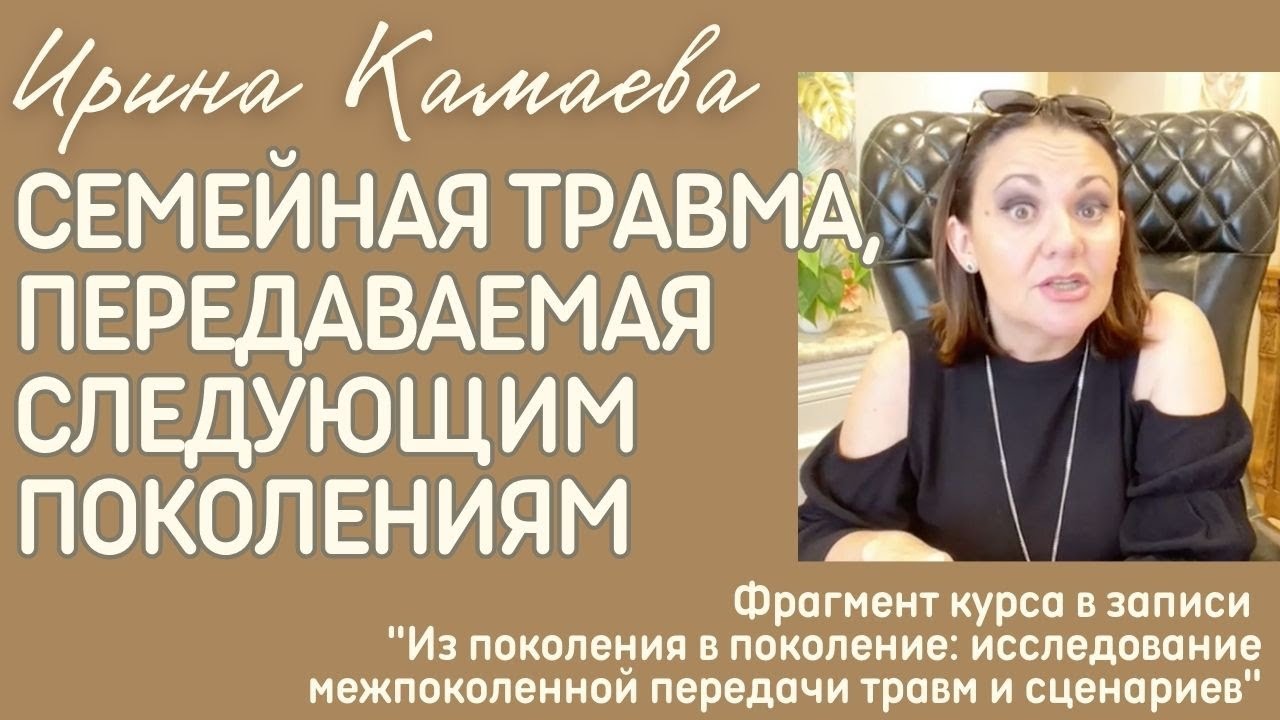 Комментарии на премодерации. Все материалы этого канала предназначены исключительно для профессионалов в области психического здоровья СЕМЕЙНАЯ ТРАВМА, ПЕРЕДАВАЕМАЯ СЛЕДУЮЩИМ ПОКОЛЕНИЯМ Большой видеофрагмент курса "Из поколения в поколение: исследование межпоколенной передачи травм и сценариев" - https://irinakamaeva.ru/tpk/ Фрагмент большой. Что в нем? 1. Какой функции не хватило семье для того, чтобы травматическое событие "переварить". 2. Как увидеть, что произошла передача этой травмы следующим поколениям? 3. Что делать нам в психотерапии? 4. Характеристика семьи с межпоколенческой травмой (тут не все, потому что не хотелось вырезать огромную часть) Весь курс вот - https://irinakamaeva.ru/tpk/ Там 8 вебинаров и три десятка заданий, которые потом психологи трансформируют в терапевтические техники. А видео смотрите, там даже в 20-ти минутах много материала. Ирина Камаева, кандидат психологических наук, психоаналитик и семейный психолог, президент Ассоциации семейных психологов, руководитель Средиземноморской школы семейной психологии и психологического консультирования Официальный сайт - irinakamaeva.ru Расписание обучающих программ по психологии - https://irinakamaeva.ru/raspisanie/ Каждую неделю - программы в записи со скидкой - https://irinakamaeva.ru/sale/ Учебные программы в записи - https://irinakamaeva.ru/up/ Телеграм-канал - https://t.me/IrinaKamaeva Youtube-канал - https://www.youtube.com/IrinaKamaevaRu Группа во ВКонтакте - https://vk.com/irinakamaevapsy Группа в ОК - https://ok.ru/group/70000001975124 Rutube - https://rutube.ru/channel/23470158/ Яндекс.Дзен - https://dzen.ru/irinakamaeva Запрещенная сеть 1 - https://www.facebook.com/irinakamaeva.ru/ Запрещенная сеть 2 - https://www.instagram.com/irinakamaeva.ru/