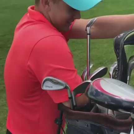 Парень застрял рукой в сумке с клюшками, пока доставал со дна мячик. #гольф #застрял #фейл #прикол