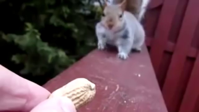 Белка осторожно подкрадывается к лакомству... Замедленная видеосъёмка.