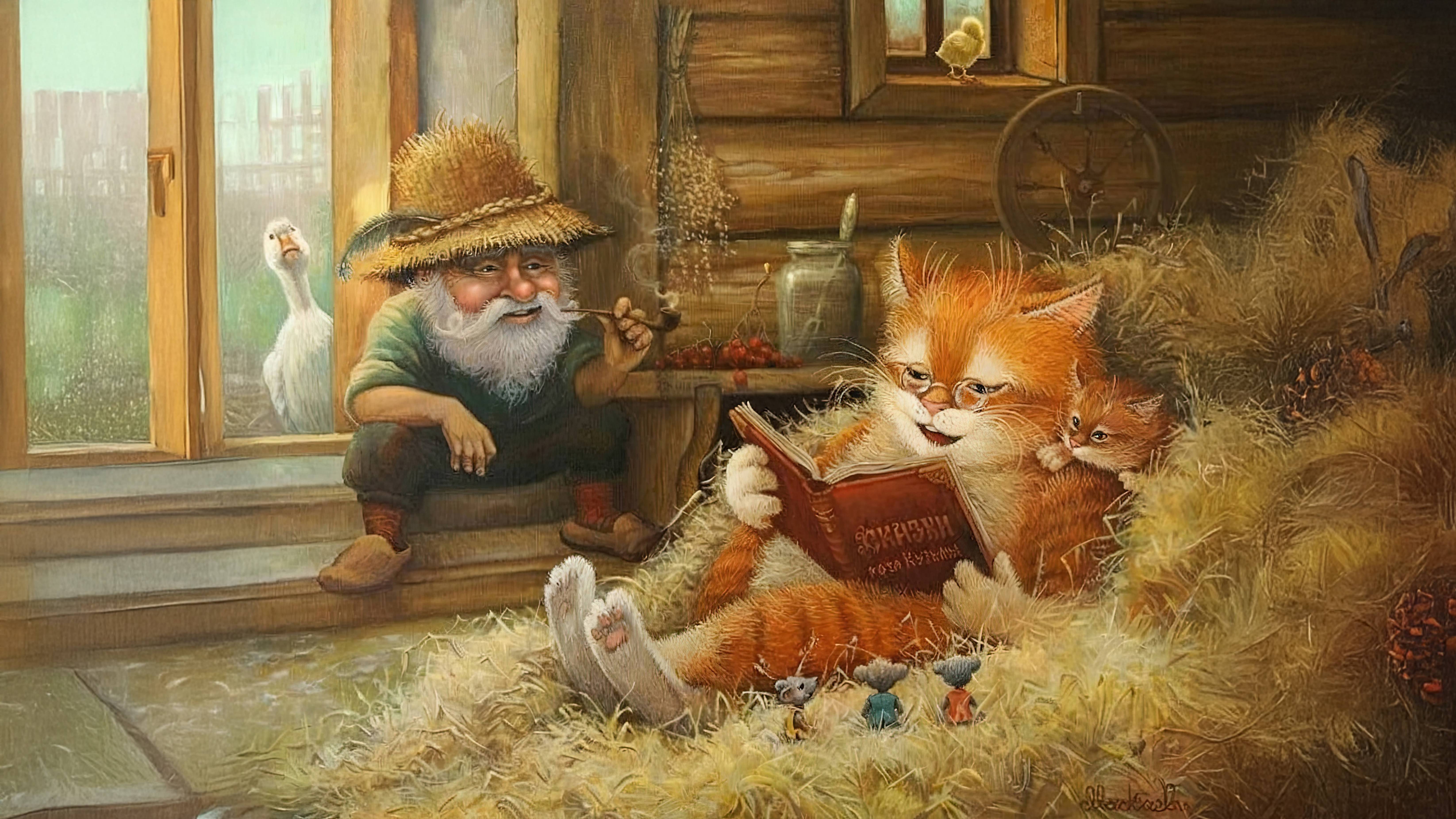 Маскаев Александр и загадка сказочного лубка Туманное утро окутало мир мягким светом, пробивающимся сквозь паутину ветвей старых деревьев. Здесь, в этом волшебном пространстве, оживают сюжеты лубочных сказок — мир, где время течет иначе, где коты играют на скрипках, лесные духи варят чай у старого самовара, а мыши помогают великанам рыбачить в озерах с зеркальной гладью. Один за другим появляются образы: гигантский рыжий кот грызет метлу, не замечая суеты крошечных мышиных обывателей вокруг старых сапог. Дедушка с добрыми глазами прижимает к груди котят, тепло домашнего очага заливает комнату, отражаясь в старинных часах на камине. Где-то в лесной чаще сидит Баба-Яга, в ее волосах запутались звезды, а на голове гордо восседает рыжий, усатый кот, лениво поглядывая на мерцающие огоньки, что роем кружат над поляной. В подземном погребе звучит скрипка – её владелец, рыжий кот в синем жилете, с закрытыми глазами выводит волшебную мелодию, подыгрывая оркестру из полевых мышей. В другой части мира на речном причале хмурый кот, нахмурив брови, держит удочку рядом с водяным – жизнь их не спешит, река журчит, мир затаился в ожидании улова. Но самое главное в этих картинах — эмоция. Она оживляет ткань сказки, делает лубок не просто детским рисунком, но ключом к пониманию глубинных смыслов. Взаимодействие героев, невидимые связи между ними, их мотивы и устремления — всё это невидимое для машины, но очевидное для человека, создающее неповторимый художественный узор. Так рождается игра: отличить оригинал от реплики, увидеть, где искусство стало зеркалом человеческих чувств, а где лишь точной, но холодной копией форм. В этом и есть магия искусства — не в деталях, а в дыхании жизни внутри него. 🔻 Навигация по видео для удобного просмотра Рекомендуется смотреть это на большом стационарном мониторе, а не на смартфоне. Скорость просмотра можно замедлить до 70%, 50%, 20% или полностью остановить и отключить музыку. ✔ Пауза – нажмите Пробел, чтобы остановить видео. ✔ Покадровый просмотр – используйте Стрелки влево/вправо для точной навигации. ✔ Быстрая перемотка – сочетание Shift+Стрелка поможет двигаться на 5 секунд вперёд или назад. 👀 Некоторые моменты уникальны и едва уловимы. Пробуйте изучать покадрово, чтобы полностью прочувствовать тему. Теги: #сказочныйлубок #русскоеискусство #АлександрМаскаев #лубочныеиллюстрации #искусствоиИИ #репликавсоригинал #детскиеиллюстрации #нейросети #мифывискусстве #эмоциявискусстве #искусственныйинтеллект #анализизображений #угадайоригинал