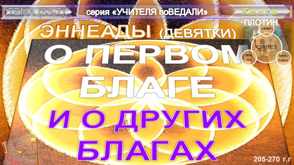 7-й трактат-О ПЕРВОМ БЛАГЕ И О ДРУГИХ БЛАГАХ (Девятки)- Плотин (205-270гг)- ученик Платона-основатель неоплатонизма- древнегреческий философ периода античности. Составлено и продекламировано ( в ноябре 2022) Небесная Нить.