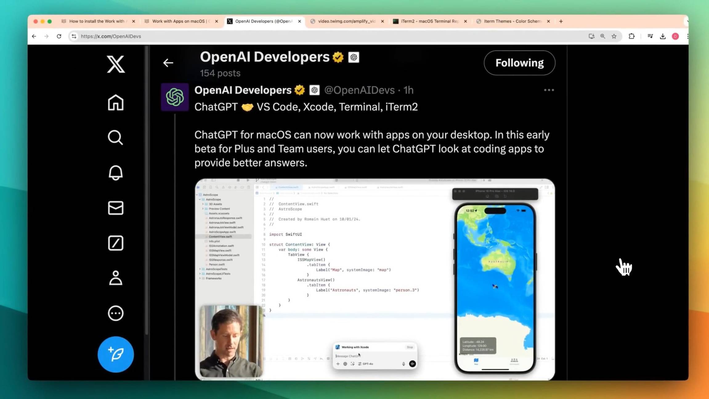 Переведено и озвучено с помощью BotHub. BotHub — российская платформа с простым доступом к передовым нейросетям без VPN и зарубежных номеров. У нас вы найдете ChatGPT, Claude, Midjourney, Grok, DeepSeek, Flux, Stable Diffusion и многие другие нейросети в простом и понятном интерфейсе. 🌐 Сайт: bothub.chat 📱 Telegram-канал: t.me/bothub__chat 🤖 Telegram-бот: t.me/bothub__chat_bot —— Оригинал видео: https://www.youtube.com/watch?v=ullyQaC39Mg В этом ролике рассматривается новейшая функция приложения ChatGPT для macOS от компании OpenAI, которая позволяет разработчикам напрямую взаимодействовать с такими программами как VS Code, iTerm2 и Xcode. Подробно объяснен процесс настройки, продемонстрированы возможности функции в реальном времени, а также представлены перспективы развития. Несмотря на то, что функция находится в бета-версии и пока не поддерживает возможности записи и выполнения кода, она представляет собой многообещающий шаг к более эффективным рабочим процессам программирования. Присоединяйтесь и исследуйте это интересное обновление!