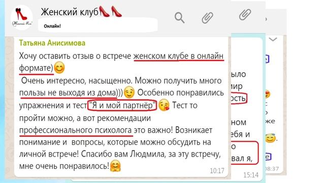ВОТ ССЫЛКА на видео о курсе "Свой женский клуб. Как создать" - https://rutube.ru/video/639861287f5a101d6e821b15a187f23c/ Вопросы можно задать Людмиле Мызиной по ватсапп +79224118718 или по эл.почте - boss1@ludmilamyzina.com. Обязательно отвечу! ---------- ТЕМЫ ВСТРЕЧ ЖЕНСКОГО КЛУБА: 2:12 - тема встречи №1 3:17 - тема встречи №3 5:32 - тема встречи №4 6:15 - тема встречи № 5 7:20 - тема встречи №6 7:57 - тема встречи №7 8:34 - тема встречи №8 9:25 - тема встречи №9 11:07 - тема встречи №10 НАШ КЛУБ ЗДЕСЬ - https://t.me/+4sB93d2wkq0zMmEy