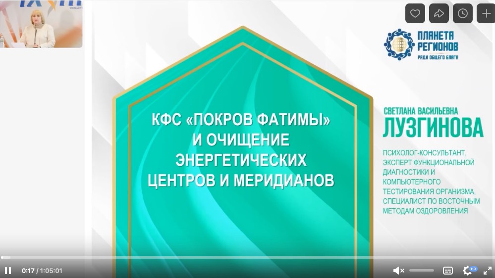 Лузгинова С.В. «КФС «Покров Фатимы» и очищение энергетических центров и меридианов» 13.09.24