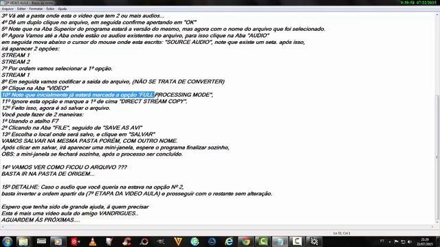 Video Aula Nº2 - Extrair Audio de Filmes Com o Programa Virtualdub