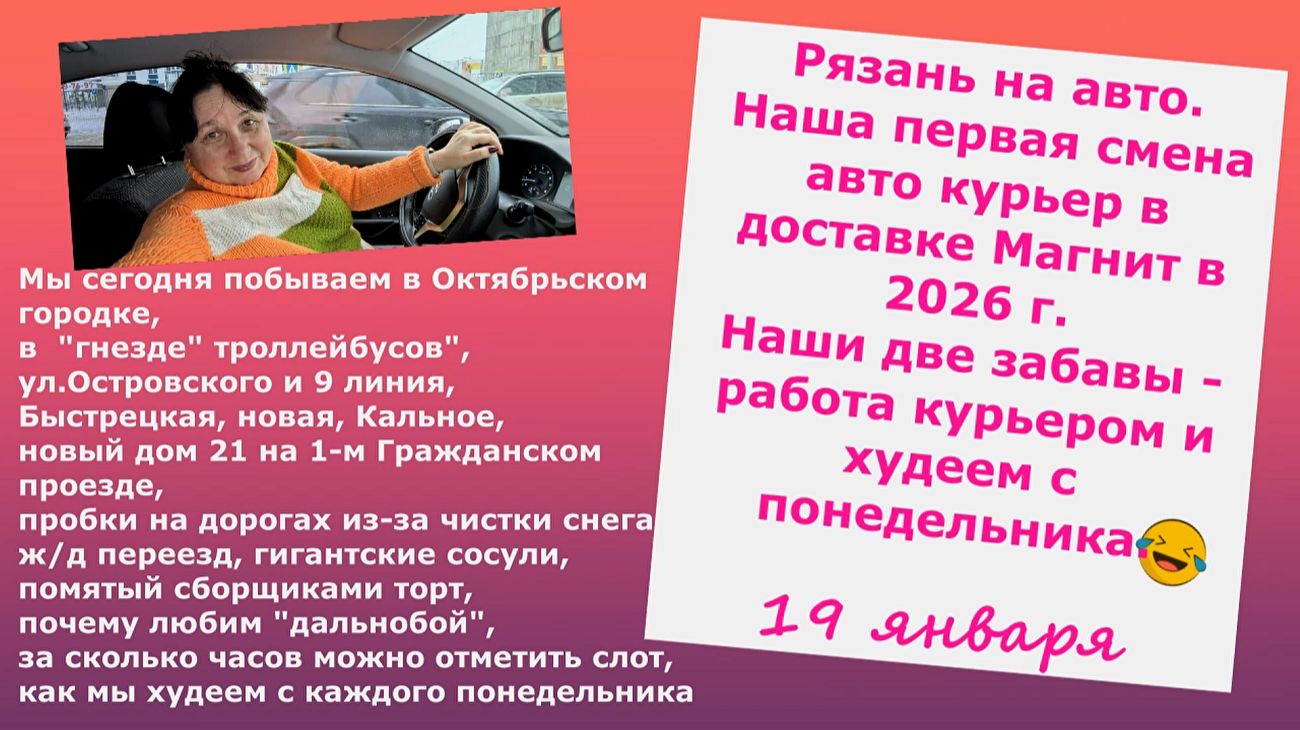 Рязань на авто. Курьер доставка Магнит в новом2026году. Две забавы-работаем и худеем с понедельника