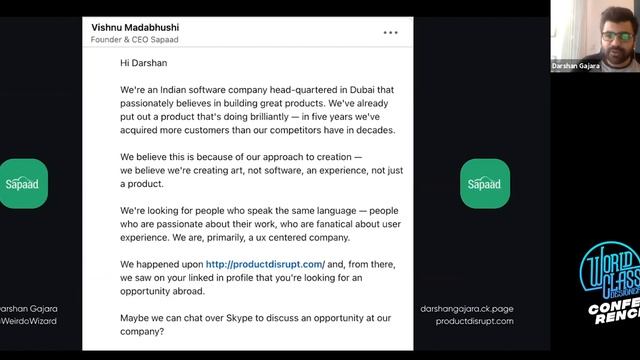 Darshan Gajara, a designer, provides tips on how to build a successful design career with side projects. He discusses the importance of finding a problem to solve, networking with other designers, and building a personal brand. He started his own successful side project, "Product Disrupt," in 2017, which he monetizes through sponsorships and affiliates. He recommends building something in public to gain an audience and improve connections with the community. He emphasizes finding a problem to solve and building a network of supportive friends and following popular products and designers on social media. He also provides advice on how to build a product, including advice on how to find and prioritize goals. Visit our platforms digital for more information and updates! Website: https://wcdc.webflow.io/ Facebook: https://bit.ly/facebookworldclassdesigner LinkedIn: https://bit.ly/LinkedinWorldClassDesigner Twitter: https://twitter.com/wcd_school