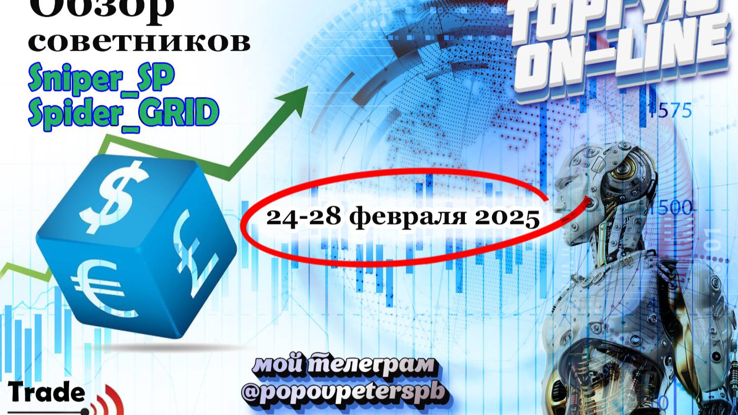 Всем привет. Мой канал - единственный, где показываю работу своего торгового советника SniperSP для рынка форекс, где бот зарабатывает в режиме онлайн. Показываю все сделки бота, статистику и принцип работы советника. Также, для всех пользователей бота SniperSP есть отдельный канал в телеграм, где постоянно оказываем тех. поддержку. Советник SniperSP написан точно по системе SPIDER и СНАЙПЕР. Обе системы совмещены в этом боте. Каждая сделка имеет стоп и тейк Бот не усредняется, Бот не строит сетку ордеров Бот не использует Мартингейл Работает на полном автомате и зарабатывает Бесплатно сигналы на рынок форекс Брокеры партнеры, которые дадут вам лучшие условия для получения советника SniperSP GracexFx https://gracexfx.com/?promo=6959353 Амаркетс https://profit-market.info/fx/?g=ELIG6 Робофорекс https://my.roboforex.com/en/?a=crjw FxPro https://fxpro-direct.com/ru/partner/9... Открытая ссылка на канал в ТЕЛЕГРАМ: https://t.me/Trade_fm_forex Телеграм: @popovpeterspb https://vk.com/trade_fm