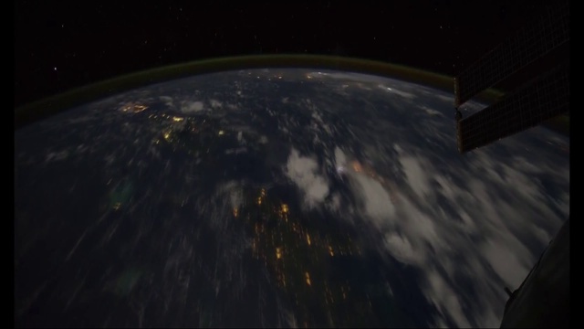 A time-lapse taken from the front of the International Space Station as it orbits our planet at night. This movie begins over the Pacific Ocean and continues over North and South America before entering daylight near Antarctica. Visible cities, countries and landmarks include (in order) Vancouver Island, Victoria, Vancouver, Seattle, Portland, San Francisco, Los Angeles. Phoenix. Multiple cities in Texas, New Mexico and Mexico. Mexico City, the Gulf of Mexico, the Yucatan Peninsula, El Salvador,