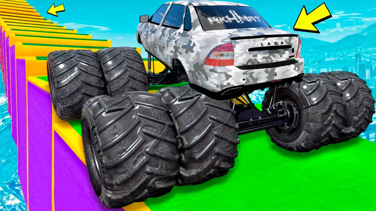КАК ДАЛЕКО СМОЖЕТ ЧИТ МОНСТР ТРАК ЗАБРАТЬСЯ ПО СТУПЕНЬКАМ ЛЕСТНИЦЫ? ЭКСПЕРИМЕНТЫ ГТА 5!