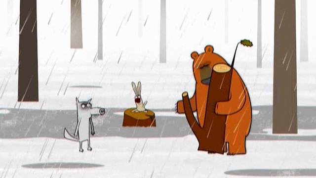 Музыкальное трио попало под дождь:) Мультфильм про медведя, зайца и волка - забавных лесных музыкантов с канала Niсkelodeon.