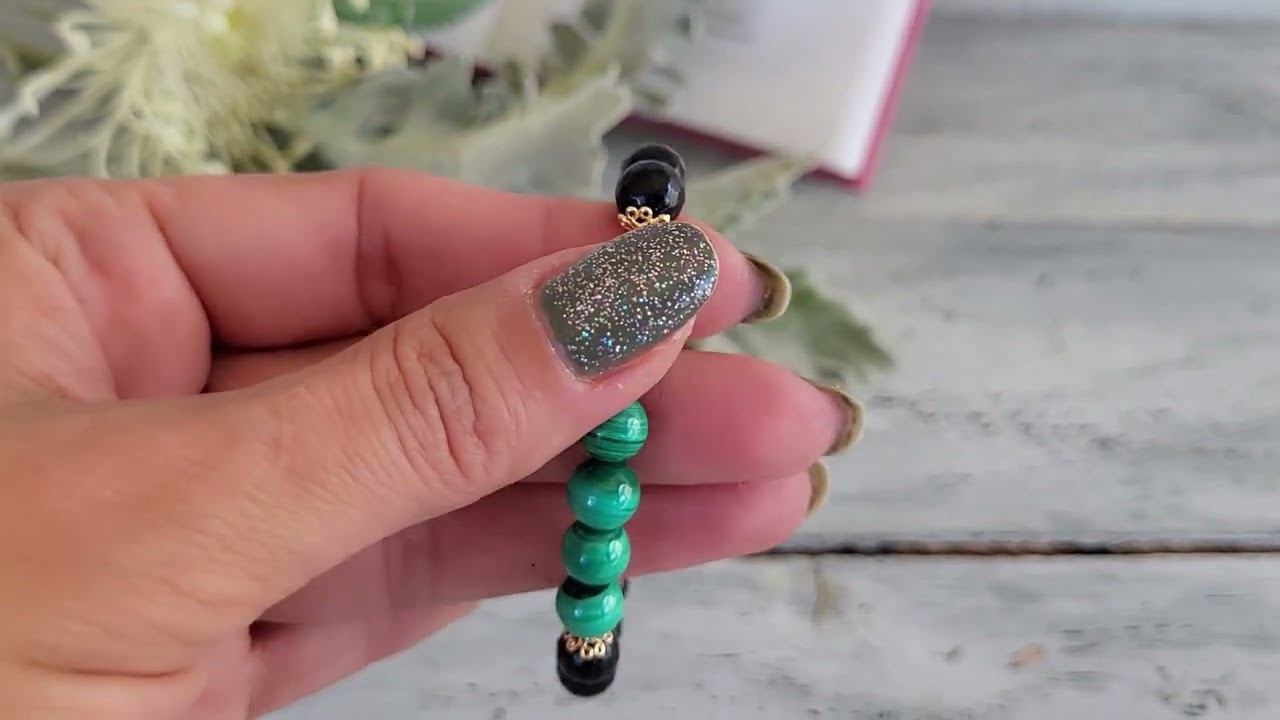 Браслет из малахита, агата черного