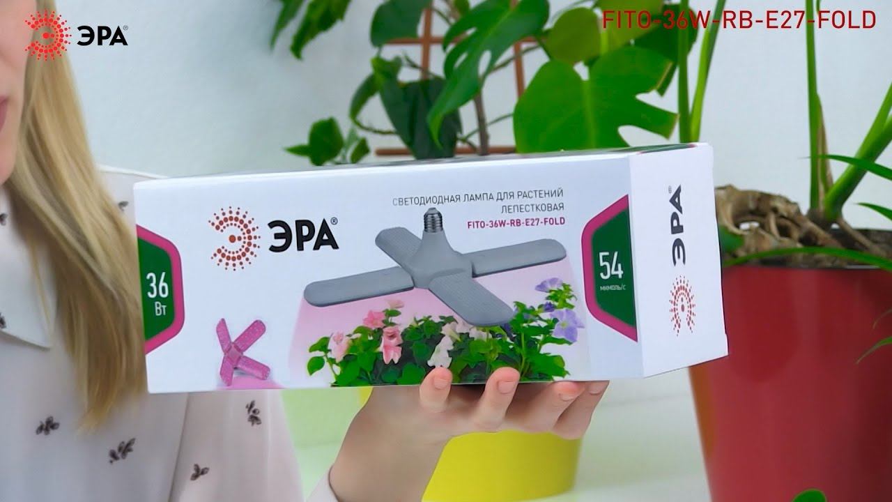 Фитолампа Е27 красно-синего спектра мощностью 36 Вт способна осветить несколько квадратных метров рассады с высокой эффективностью. Рекомендованная высота от лампы до листьев от 15 до 75 см. Регулировка поворота лепестков лампы на 180 градусов. Для получения сконцентрированного светового потока расположите лепестки под 90 градусов друг к другу. Прозрачный рассеиватель и белый глянцевый корпус лампы позволили ее сделать максимально энергоэффективной. Корпус из негорючего пластика - Вы можете спокойно оставлять прибор без присмотра. Лампа клевер ЭРА FITO-36W-RB-E27-FOLD на первый взгляд кажется странной и непривычной, но в лепестковой лампе за счет распределения печатных плат на большой площади проблема со съемом тепла с диодов решается намного легче и дешевле, чем в радиаторных лампах. В данном решении есть перфорация для съема тепла с блока питания лампы. Красно-синий спектр и эффективность лампы при этом не уступают стандартным решениям от компании ЭРА. Размеры: 98-393х250х100 мм. Фитолампа для растений светодиодная ЭРА FITO-36W-RB-E27-FOLD 4-х лепестковая красно-синего спектра 36 Вт Е27 В онлайн-каталоге ЭРА: https://www.eraworld.ru/catalog/2658576 Купить на Ozon: https://www.ozon.ru/context/detail/id/513541984/ Купить на Wildberries: https://www.wildberries.ru/catalog/71385009/detail.aspx?targetUrl=BP Официальный сайт ЭРА: http://www.eraworld.ru/ Cоцсети ЭРА: https://www.instagram.com/era_russia https://vk.com/era.russia https://www.facebook.com/ERA.russia/ https://m.ok.ru/era.russia/