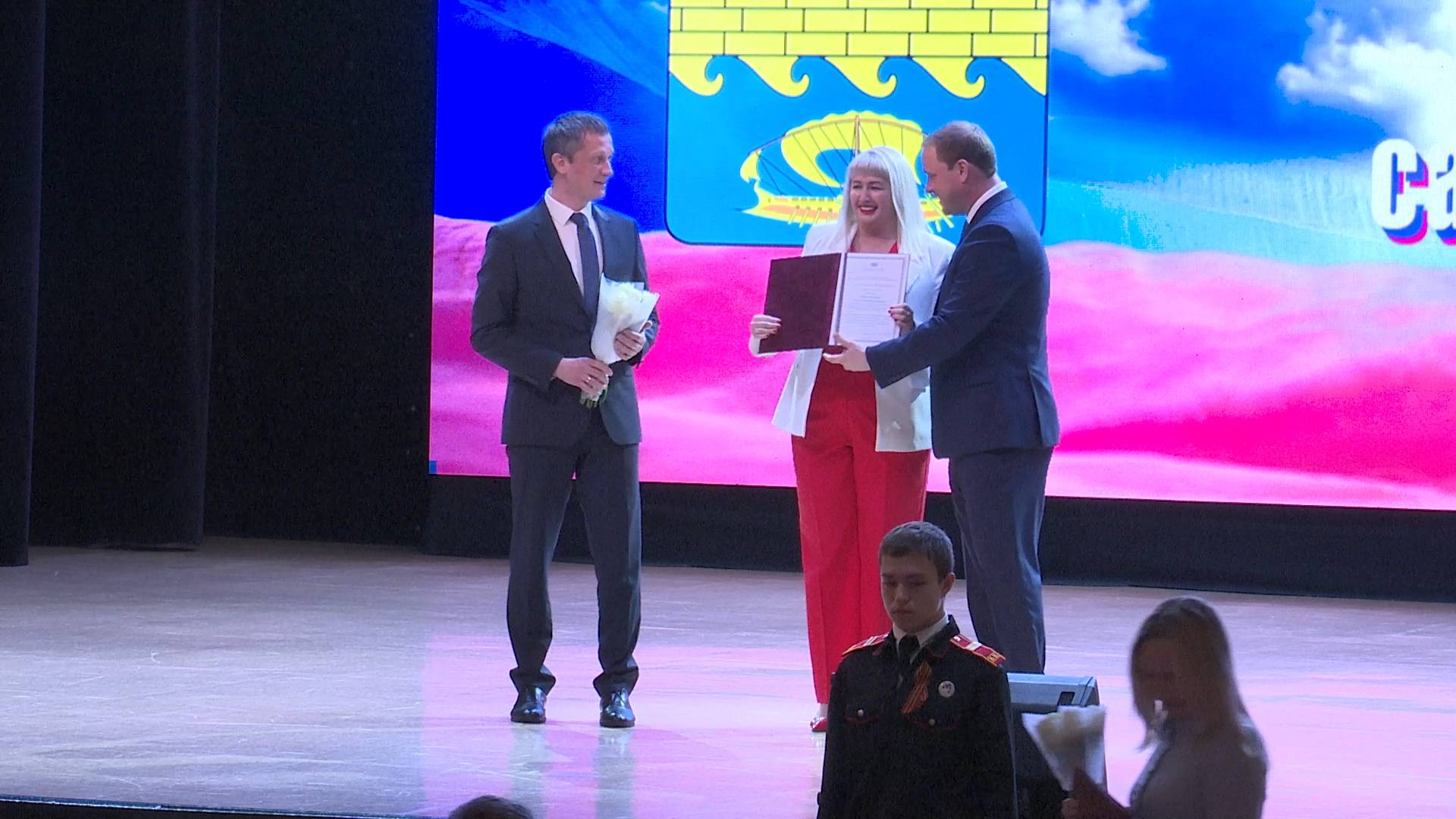 На праздничном мероприятии в Городском театре курорта отметили сотрудников и ветеранов муниципальной службы, депутатов, а также представителей ТОС. С поздравительной речью со сцены выступили мэр Анапы Василий Швец и председатель Совета Вячеслав Вовк.