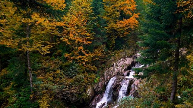 Расслабляющие звуки осеннего леса и водопада