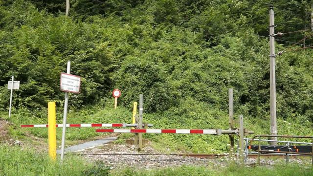 Beschrankter Bahnübergang, außer Betrieb, demontierte Mechanik & Vorläutwerk. Waidhofen an der Ybbs, Seebachgasse, Kronprinz Rudolf-Bahn. Rudolfsbahn, ÖBB. Strecke Amstetten - Kleinreifling, Kilometer 26,182; Bahnübergang, Eisenbahnkreuzung, Niveauübergang, Level crossing, Railroad crossing, Railroad-Xing, Passage à niveau, Passaggio a livello Jernbaneoverskæring, Paso a nivel, Raudteeülesõidukoht, Tasoristeys, Željezničko cestovni prijelaz, vasúti átjáró, Spoorwegovergang, Przejazd kolejowy, Passagem de nível, Železničné priecestie, Plankorsning, Železniční přejezd