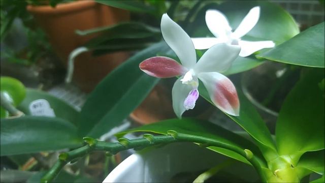 Coolest phalaenopsis species because of unpredictable randomness of red color. I bought it with label stating Phal. speciosa C1 few years ago. It blooms often with many flowers at once, but doesn't grow into large plant. Old leaf sheds away when new one comes out. Not sure why. More info on species here http://www.orchideya.ca/Phalaenopsis/s/speciosa-id%3dd19ee641-cb82-4f19-9a20-82752bd568d1