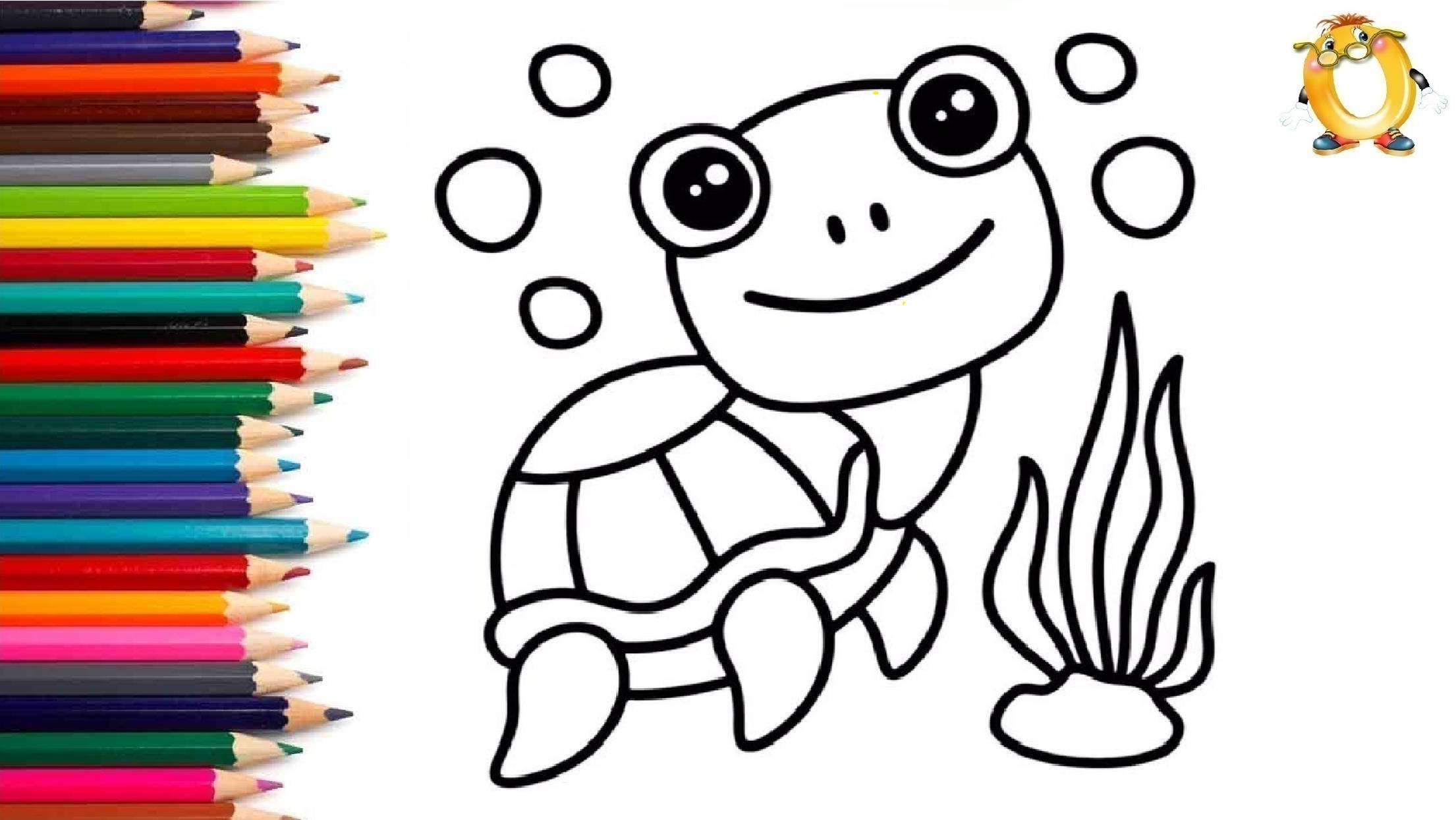 Мультик - раскраска для детей ЧЕРЕПАХА. Учимся как рисовать ЧЕРЕПАШКУ вместе с детьми.