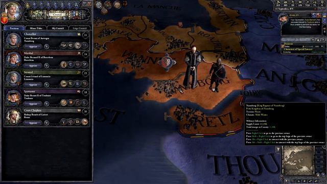 It is time for another Bronzmen campaign. Now we will be playing as King Louise II – King of Aquitaine – goal is to own complete Kingdom of France and Aquitaine and be Emperor of Francia. So let‘s see how successful we will be. List of mods I am using: Minimap Makeover: https://steamcommunity.com/sharedfiles/filedetails/?id=524908491 BlueDuke: https://steamcommunity.com/sharedfiles/filedetails/?id=484605239 Bigger Interface: https://steamcommunity.com/sharedfiles/filedetails/?id=762121960 Bigger Interface: Picture Addon: https://steamcommunity.com/sharedfiles/filedetails/?id=766900602 Orange Ransom Button: https://steamcommunity.com/sharedfiles/filedetails/?id=841334809 Novus Graphicus: https://steamcommunity.com/sharedfiles/filedetails/?id=459129816 Portrait than Trait: https://steamcommunity.com/sharedfiles/filedetails/?id=1584690453 ★ Paradox Interactive is the copyright holder of Crusader Kings 2. ★Copyright © 2016 Paradox Interactive AB. www.paradoxplaza.com★