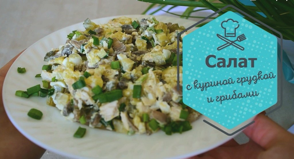 Потрясающе вкусный салат с куриной грудкой и грибами