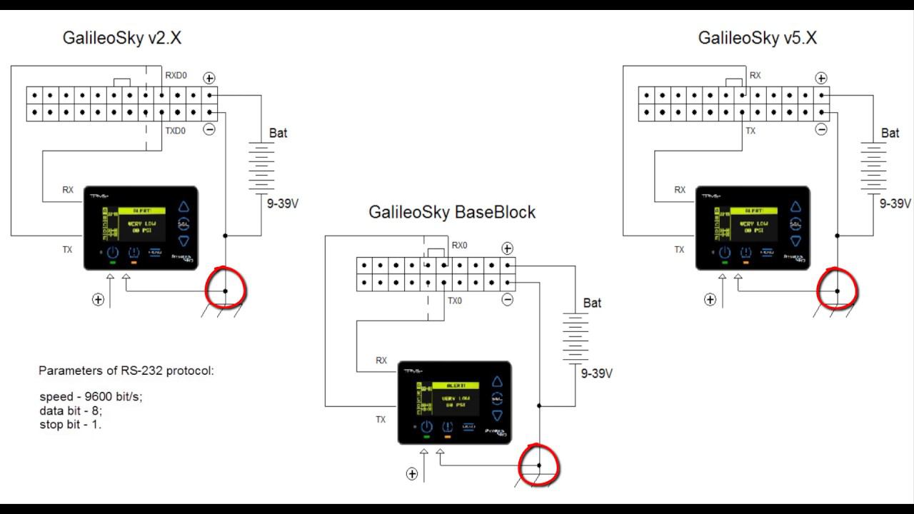 RS232 Connection of PressurePro Pulse TPMS to Galileosky terminals