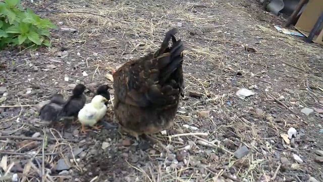Наседка с цыплятами первые дни. Природа домашние птицы