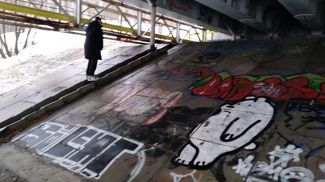 Пришли в дождь в интересное место под мост через реку Клязьма, тут граффити