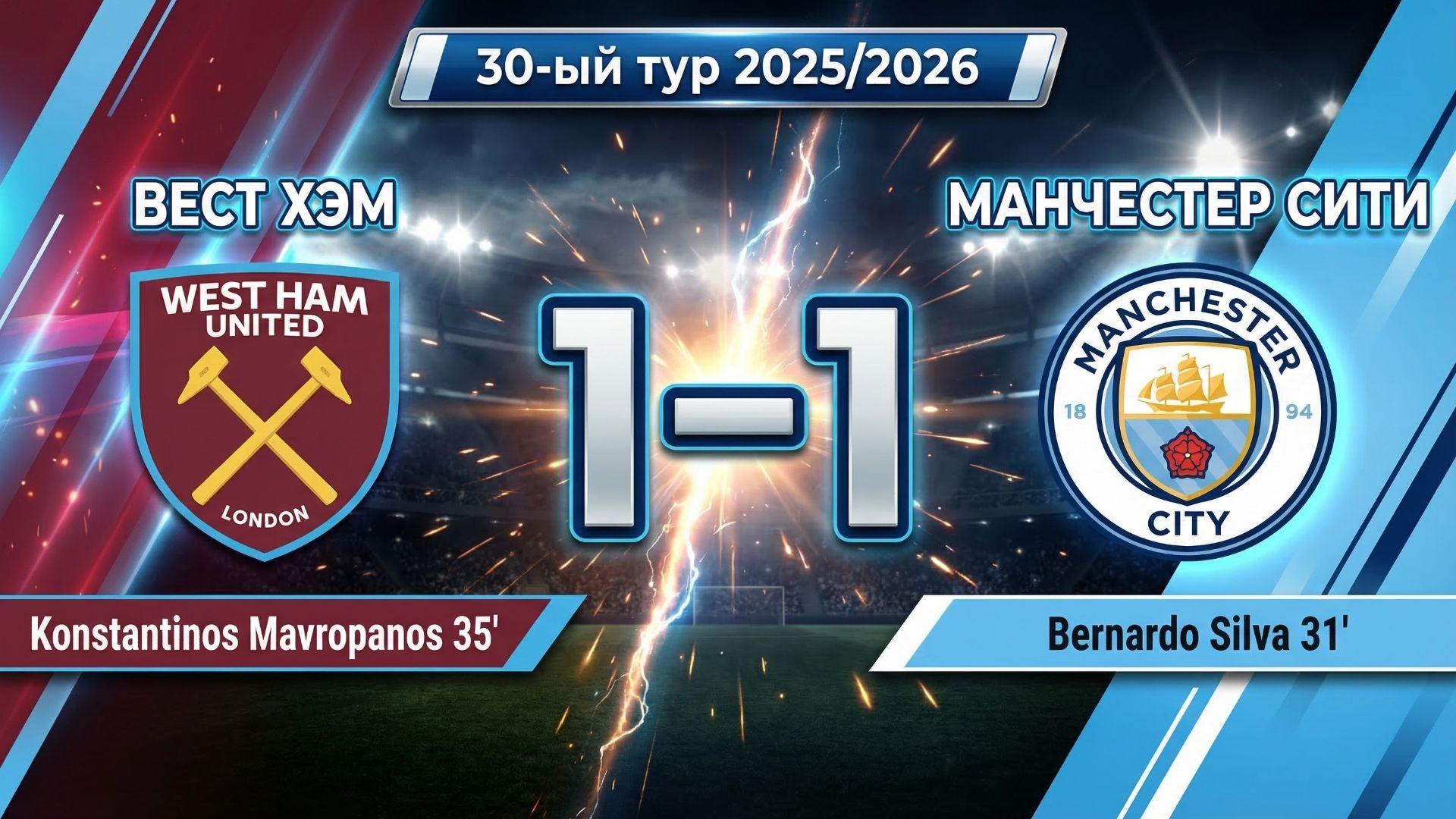 ГОЛЫ ВЕСТ ХЭМ - МАНЧЕСТЕР СИТИ // 30-ЫЙ ТУР АПЛ 25/26