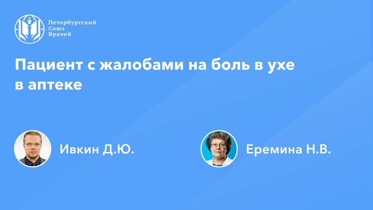 Пациент с жалобами на боль в ухе в аптеке Дата проведения: 27.06.2025, 20:00 Страница мероприятия: https://spb.doctor/i/250627/ Программа: 1. Пациент с жалобами на боль в ухе в аптеке. Ивкин Дмитрий Юрьевич 2. Возможности фармконсультирования пациентов с жалобами на боль в ухе Еремина Наталья Викторовна 3. Ответы на вопросы О семинаре: На онлайн-семинаре будут рассмотрены кейсы, касающиеся обращения в аптеку пациента с жалобами на боль в ухе. Врачебная консультация и фармацевтическая опека позволяют определить возможные причины симптома, такие как воспаление, инфекция или травма. В аптеке пациенту могут быть предложены обезболивающие средства, ушные капли и рекомендации по уходу за ухом, а также необходимость обращения к врачу для уточнения диагноза и назначения полноценного лечения. Важным аспектом является своевременное оказание помощи и информирование пациента о мерах профилактики и необходимости профессиональной диагностики.