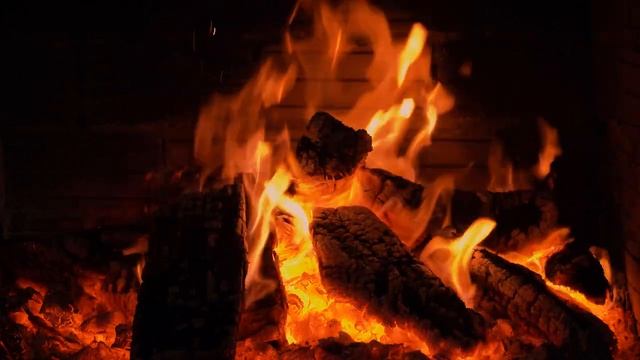 Расслабляющее видео с горящим огнем и потрескивающими звуками камина.