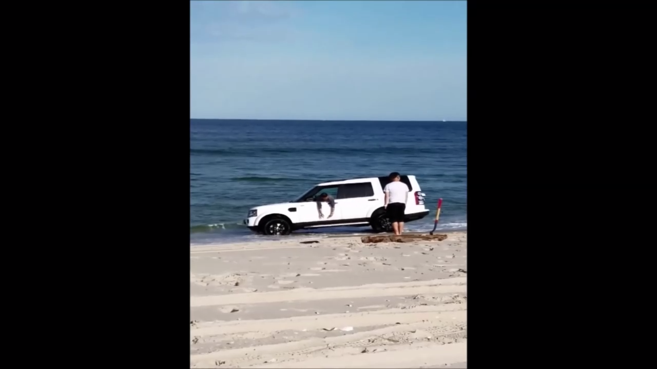 Парень в Нью-Джерси решил заехать на своем автомобиле поближе к воде. В итоге автомобиль сел в песок на самом берегу. #лопата #пляж #берег