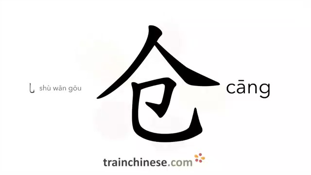 仓 (cāng) warehouse; storehouse; barn; cabin, granary / закром, амбар; кладовая, склад *каюта