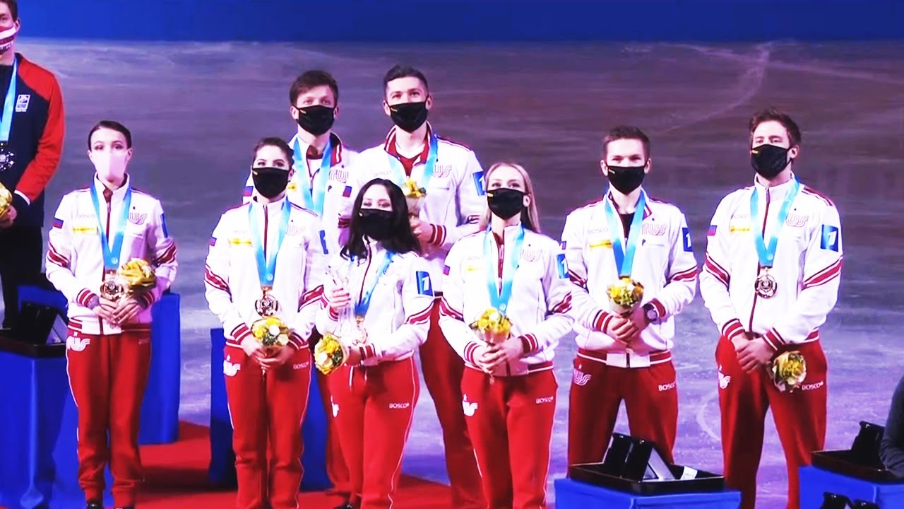 Сборная России по фигурному катанию Впервые в истории выиграла командный чемпионат мира с отрывом в 15 баллов За сборную России на турнире выступали Анна Щербакова, Елизавета Туктамышева, Михаил Коляда, Евгений Семененко, Анастасия Мишина – Александр Галлямов и Виктория Синицина – Никита Кацалапов.