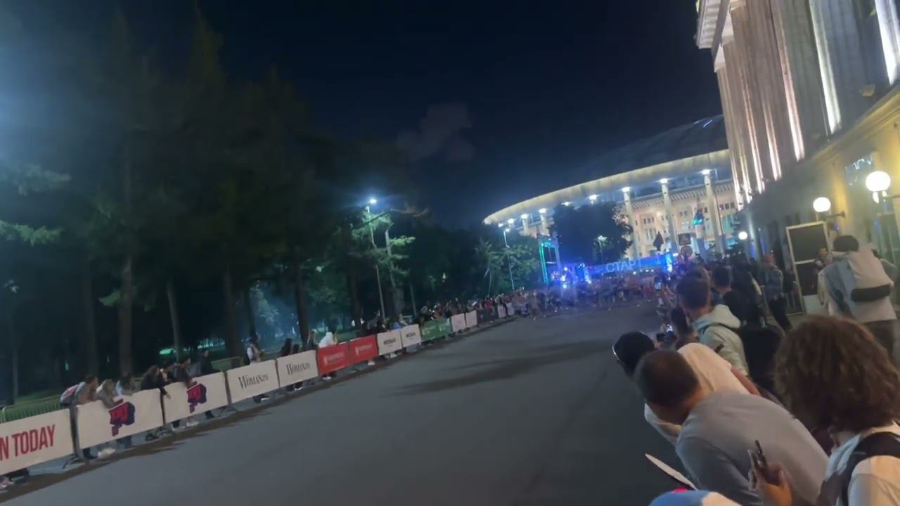 Ночной забег 2024. Старт кластера С. Бегу в голубой кепке и зеленой майке GRUT