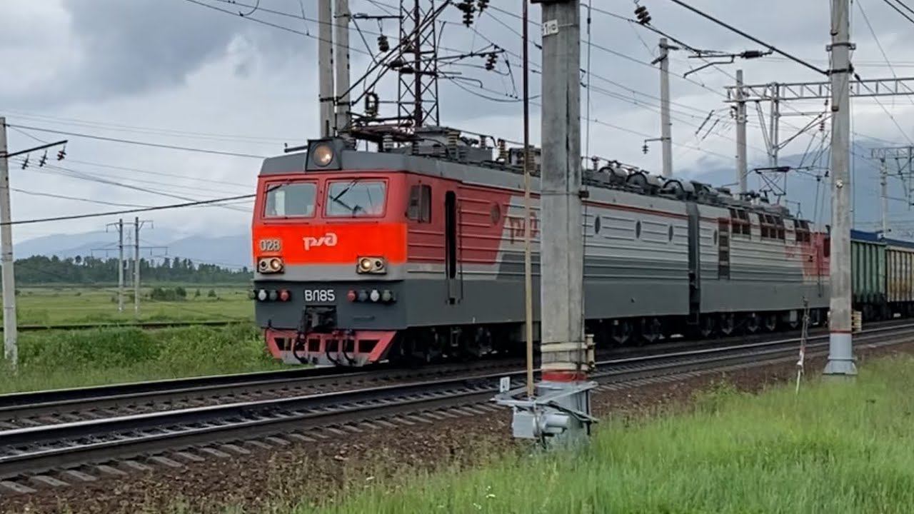 ВЛ85-028 с грузовым составом в районе озера Байкал