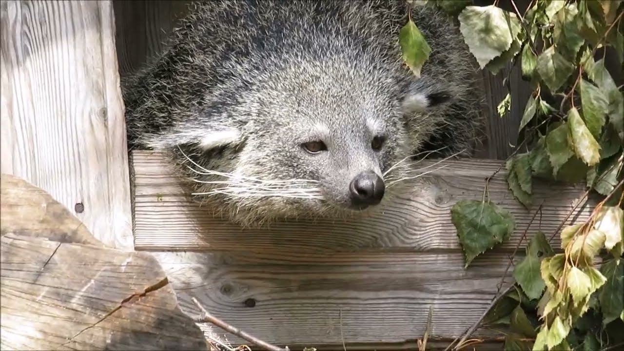 Впервые этого зверька зоопарк получил из Берлина в 2010 году. Через два года самцу подобрали пару. Самку привезли из Ташкентского зоопарка. Бинтуронг — млекопитающее семейства виверровых отряда хищных, единственный вид монотипного рода Бинтуронги. Из-за внешнего сходства ранее причислялся к семейству енотовых, однако на самом деле является своеобразным по своей форме видом виверровых. Неуклюжие и коротконогие животные, зачастую туристы их называют «кошачьими медведями» из-за внешнего сходства строения тела с кошачьими и манерой передвижения по земле как у медведя. Бинтуронги выделяют запах, похожий на запах попкорна. Бинтуронги активны по ночам и живут в основном на деревьях. они хорошие пловцы и ныряльщики. Новая пара бинтуронгов приехали в 2023 году.