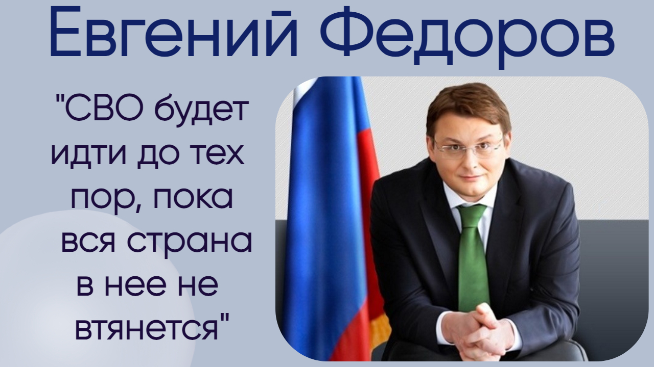 Евгений Федоров: "СВО будет идти до тех пор, пока вся страна в нее не втянется"