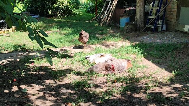 Куры греются на солнышке, а от земли прохладно. Хо-ро-шо! #дача #куры