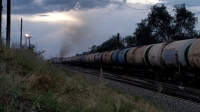 VID_20240615_202812.mp4. Приветливая лок.бригада и 2ТЭ25Км - 0147 с наливным поездом.