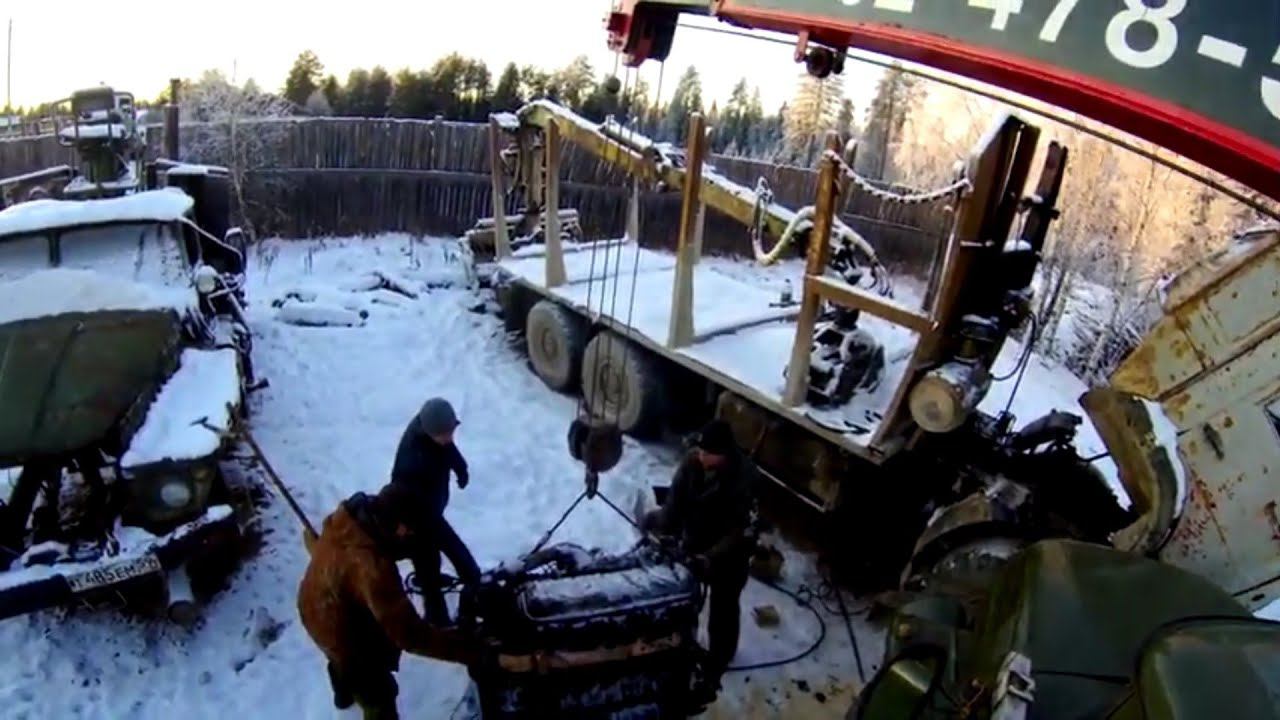 👍 Ювелирная работа МАНИПУЛЯТОРА! Как ЗИЛ-131 с КМУ снимает мотор ЯМЗ-238 с КАМАЗА! ЦЕНА за 1 час?!