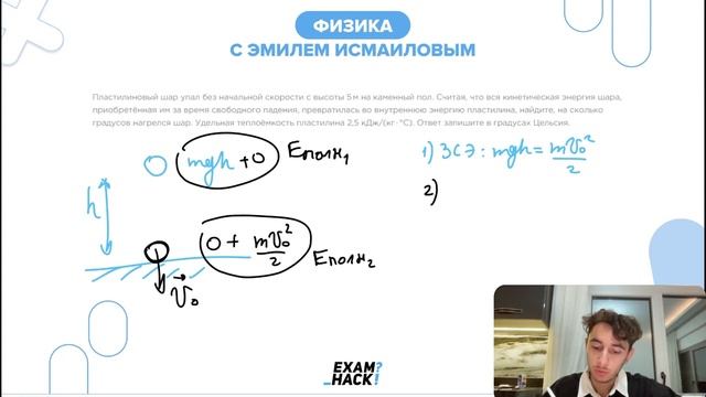 Пластилиновый шар упал без начальной скорости с высоты 5 м на каменный пол - №25435