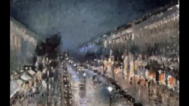 Sonata for violin & piano, FP 119 (1942-1943) I. Allegro con fuoco II. Intermezzo III. Presto tragico Yehudi Menuhin, violin Jacques Février, piano Francis Poulenc's Sonata for violin and piano was composed during 1942 and 1943 while his country was at war and its dedication is to the memory of a victim of a then-recent foreign conflict: Federico Garcia Lorca, the poet, who was slain during the Spanish Civil War. In these circumstances, even this most delightful of composers acquired a harder edge, as displayed immediately in the Allegro con fuoco first movement with a dark, jagged opening theme on the violin and percussive support on the piano. This theme, reminiscent of Poulenc's friend and model Igor Stravinsky, dominates the movement, providing the basis for both the quieter, melancholic passages, as well as further eruptions of rage. Emotions become more extreme as the movement goes on before it closes on an unexpected major chord. Tentative, repeated chords in the piano open the second movement, an "Intermezzo tres lent et calme"; the violin first enters with a pizzicato accompaniment reminiscent of guitar-plucking, then takes a short, pregnant lyrical phrase. Soon, these elements build up into a rapturous melodic interlude, with the violin's phrasing often recalling Spanish song in the work's only obvious reference to its dedicatee. After the lyrical rapture has risen and fallen, the piano enters with angular, unsettled chords that lead into an astringently harmonized violin melody; the movement ends on a weird, unresolved glissando, leading into a Presto tragico third movement that brings back the fire of the first. This soon yields to happier melodies, which the violin initially fights with furious fiddling but eventually joins. After the rush leads each instrument to an exposed solo, however, their energy seems spent, the tempo slows to Strictement le double plus lent, and the mood becomes funereal; an odd coda appears to end on an inappropriate smirk, but undercuts that with one last angry outburst. [allmusic.com] Art by Camille Pissarro