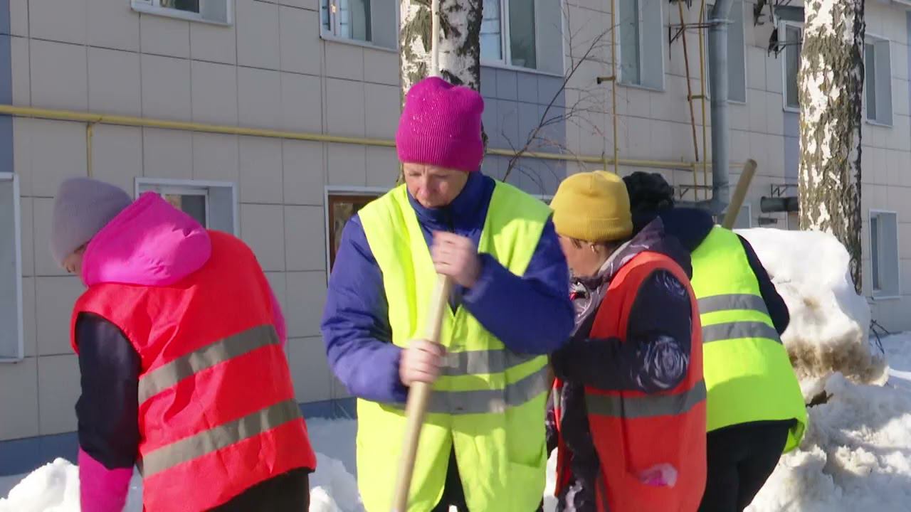 Сотрудники ООО “Мамадыш ЖКУ» очищают стоки от наледи и мусора, расчищают тротуары.