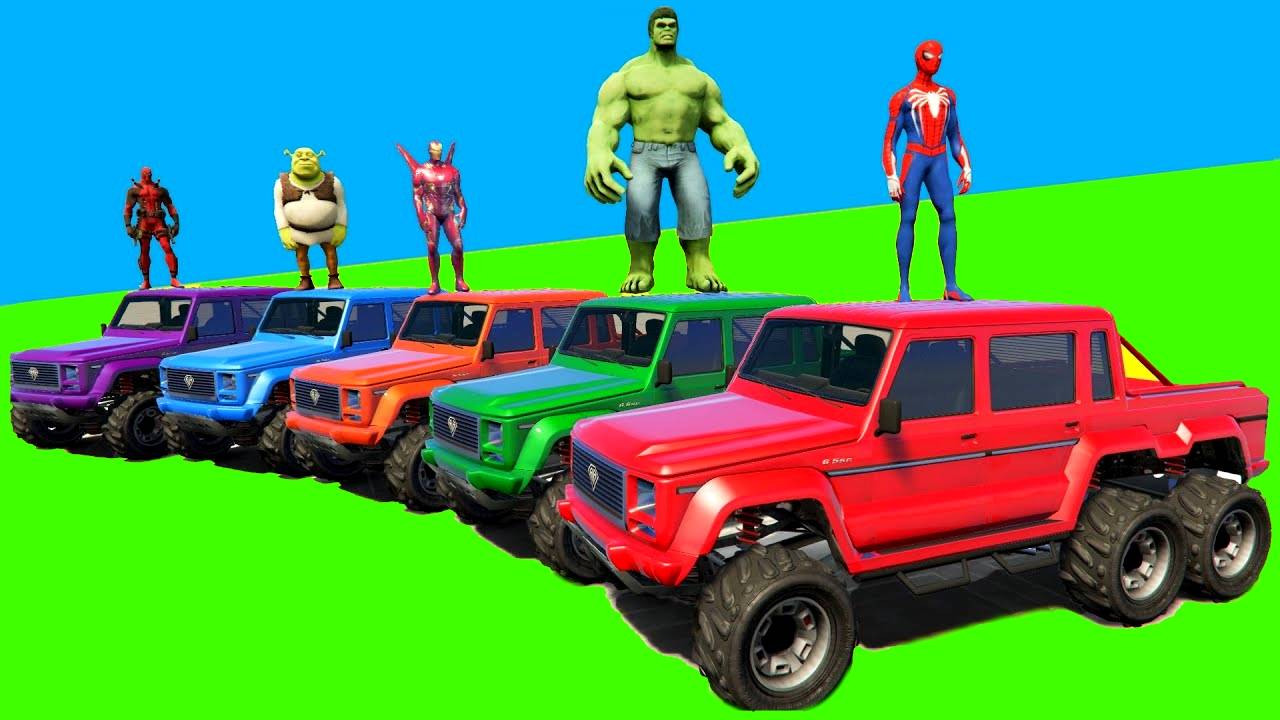 Мультфильм с красочными машинками для супергероев и детей с детскими песенками