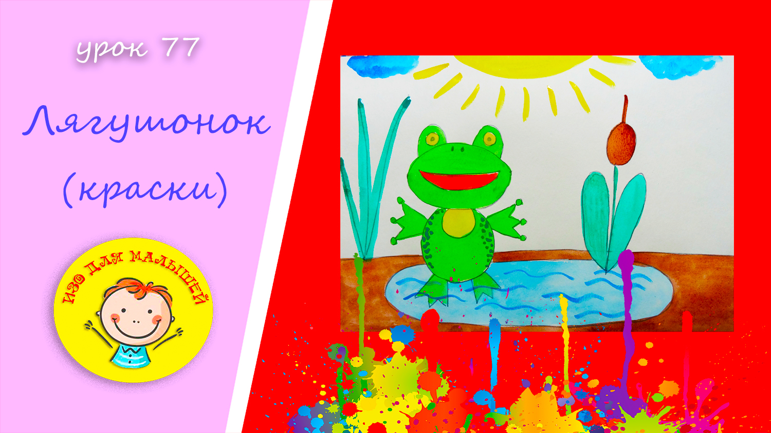 Как нарисовать ЛЯГУШОНКА красками УРОК 77.Тема: "лягушонок" -краски